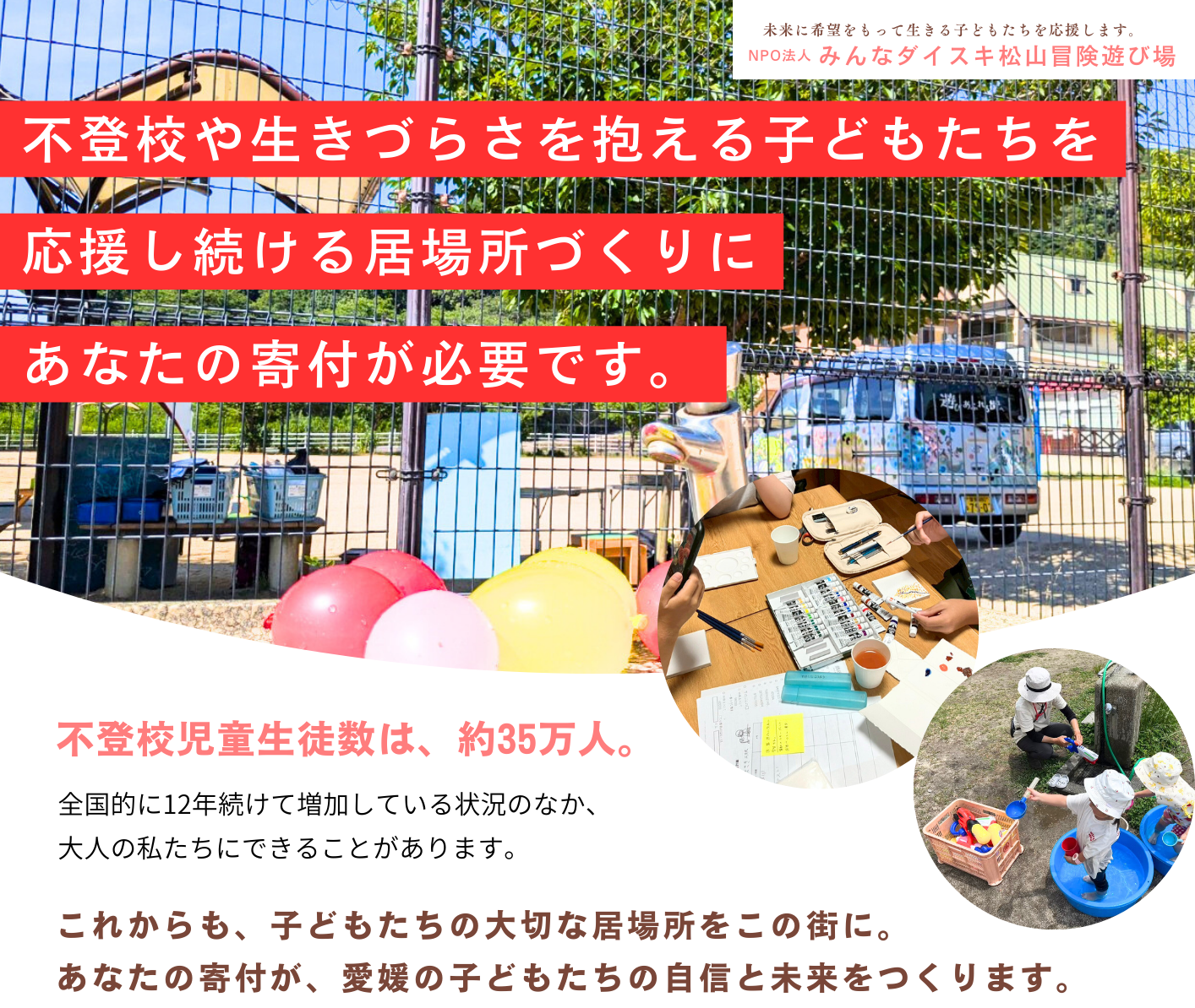 松山冒険遊び場の継続的な運営をご寄付で応援を希望される方はコチラからお願いします。