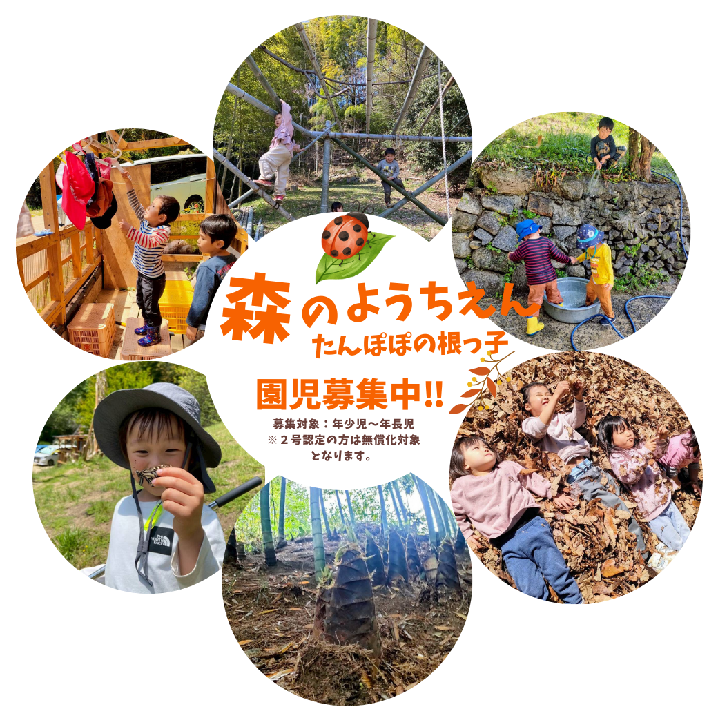 概要 自然の中で五感を使った体験を通して子どもの主体性や豊かな感性、心身の発達を促す保育を実践しています。ぜひ一度体験に来てみてください。活動場所:根っこハウス周辺と近隣の山や海や川(松山市祝谷西町とその周辺)080-8 … 続きを読む 森のようちえんたんぽぽの根っこ
